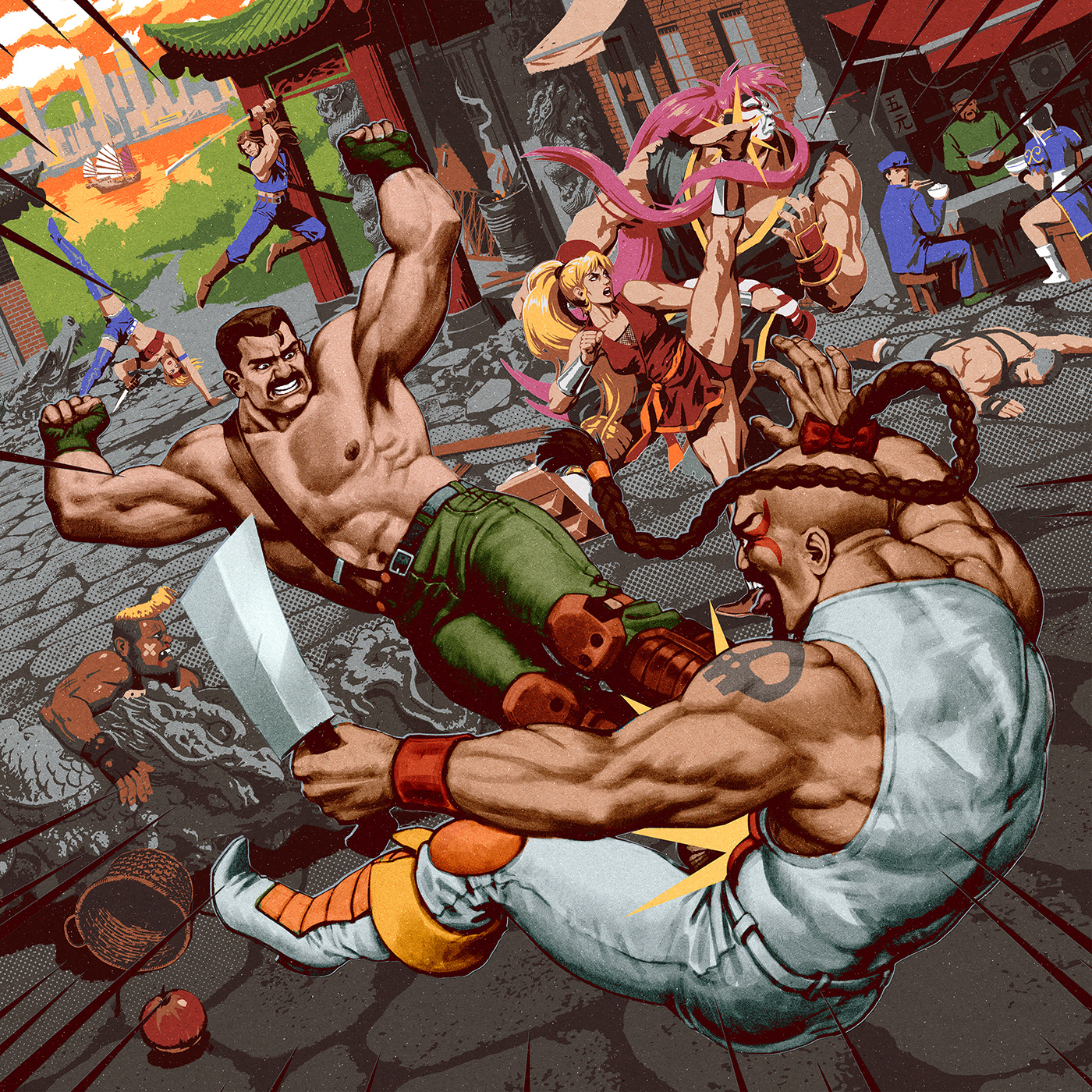 My covers for the vinyl edition of the Final Fight trilogy OST, by Mana Wave Media.