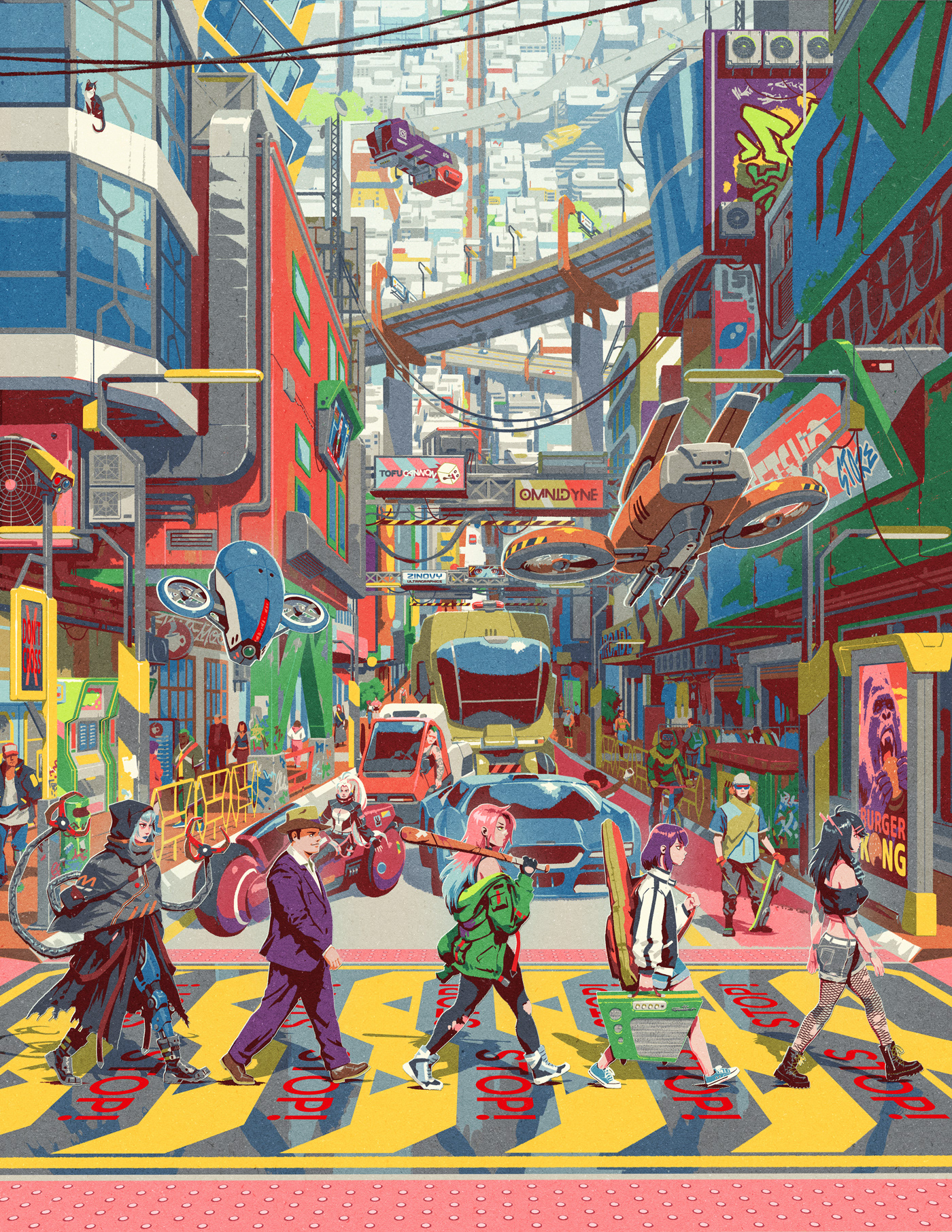 Cover for the DLC of Hard Wired Island, a cyberpunk TTRPG set on an O'Neill cylinder space station.