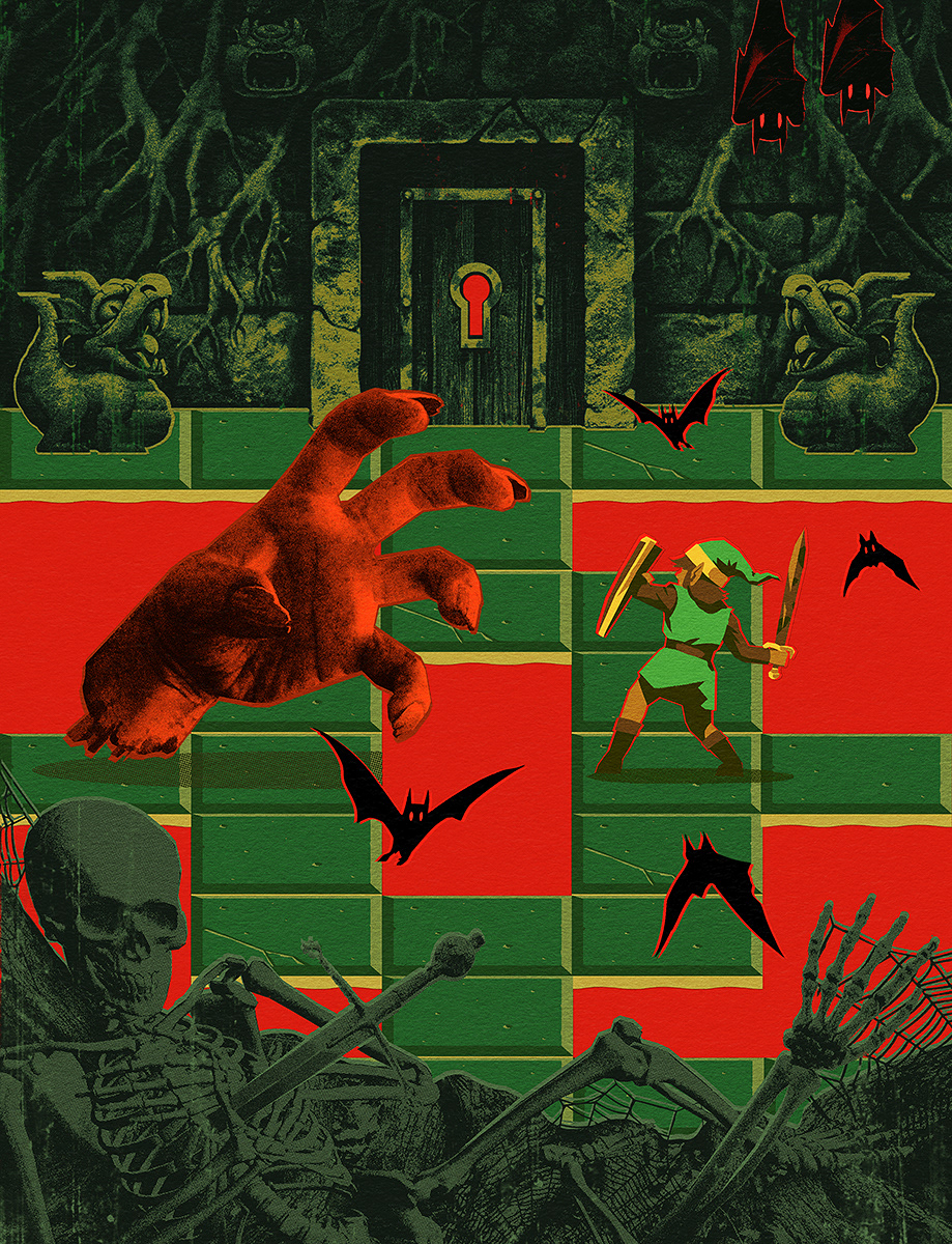 I like working from that set of constraints that fueled my imagination at the time and leave out most of what was added later in more complex sequels. The Zelda series is generally all amazing, but I wanted to bring out the images that the first installment put in my mind as a child and up to today.
